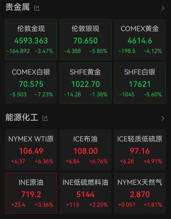 股市除外,黄金、白银盘中再次跳水。截止发稿时,伦敦现货黄金跌破4600好意思元/盎司,COMEX黄金跌近4600好意思元/盎司关隘;伦敦现货白银一度跌破70好意思元/盎司,最大跌幅超7%。